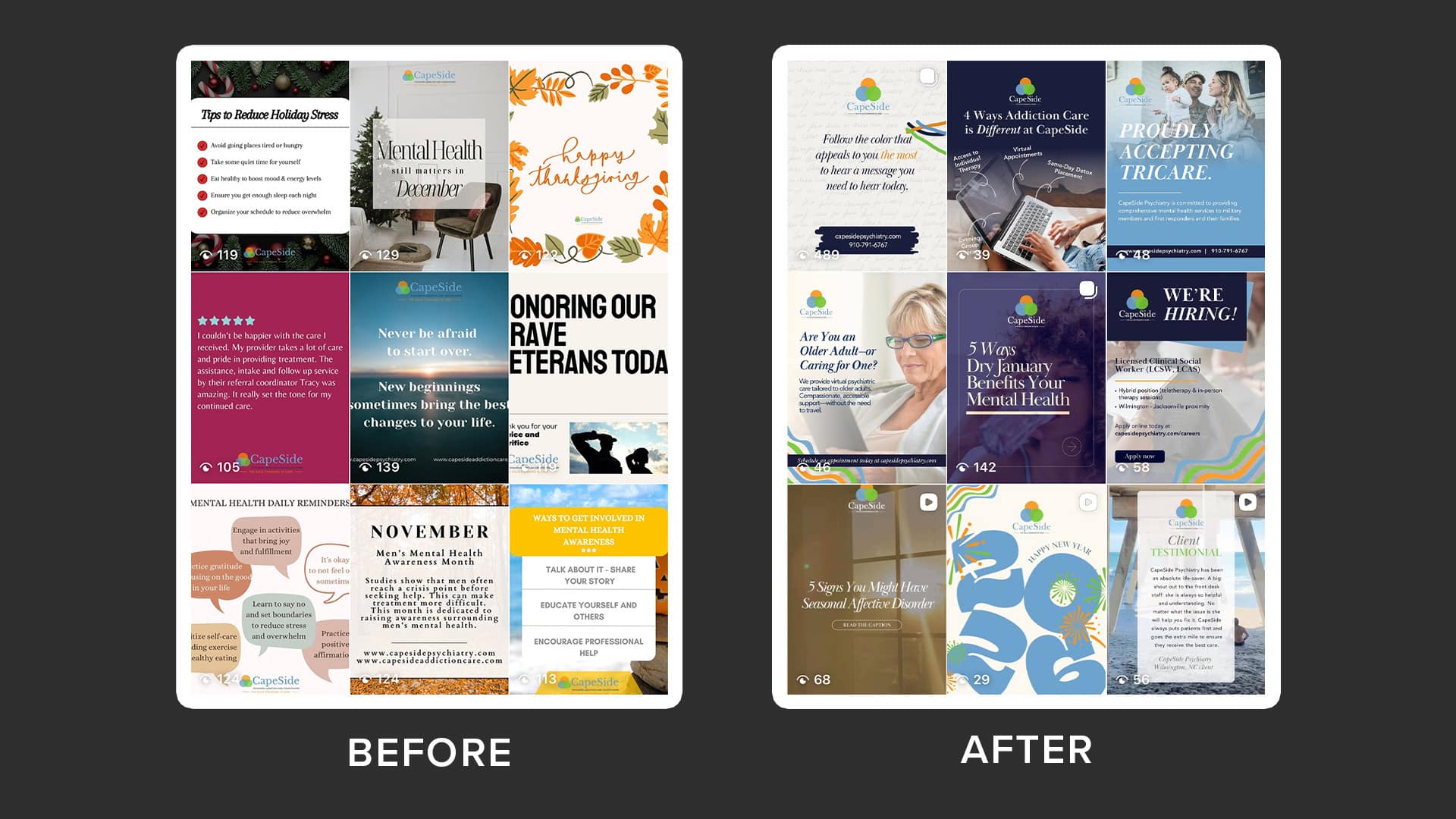Capeside Psychiatry came to us with a practice worth talking about and a social media presence that wasn't doing it justice. The content was inconsistent, the brand voice was undefined, and the opportunity to connect with patients before they ever walked through the door was being left on the table. In a category where trust is everything, we knew that getting this social media marketing right would take more than good looking posts... it would take a solid strategy.